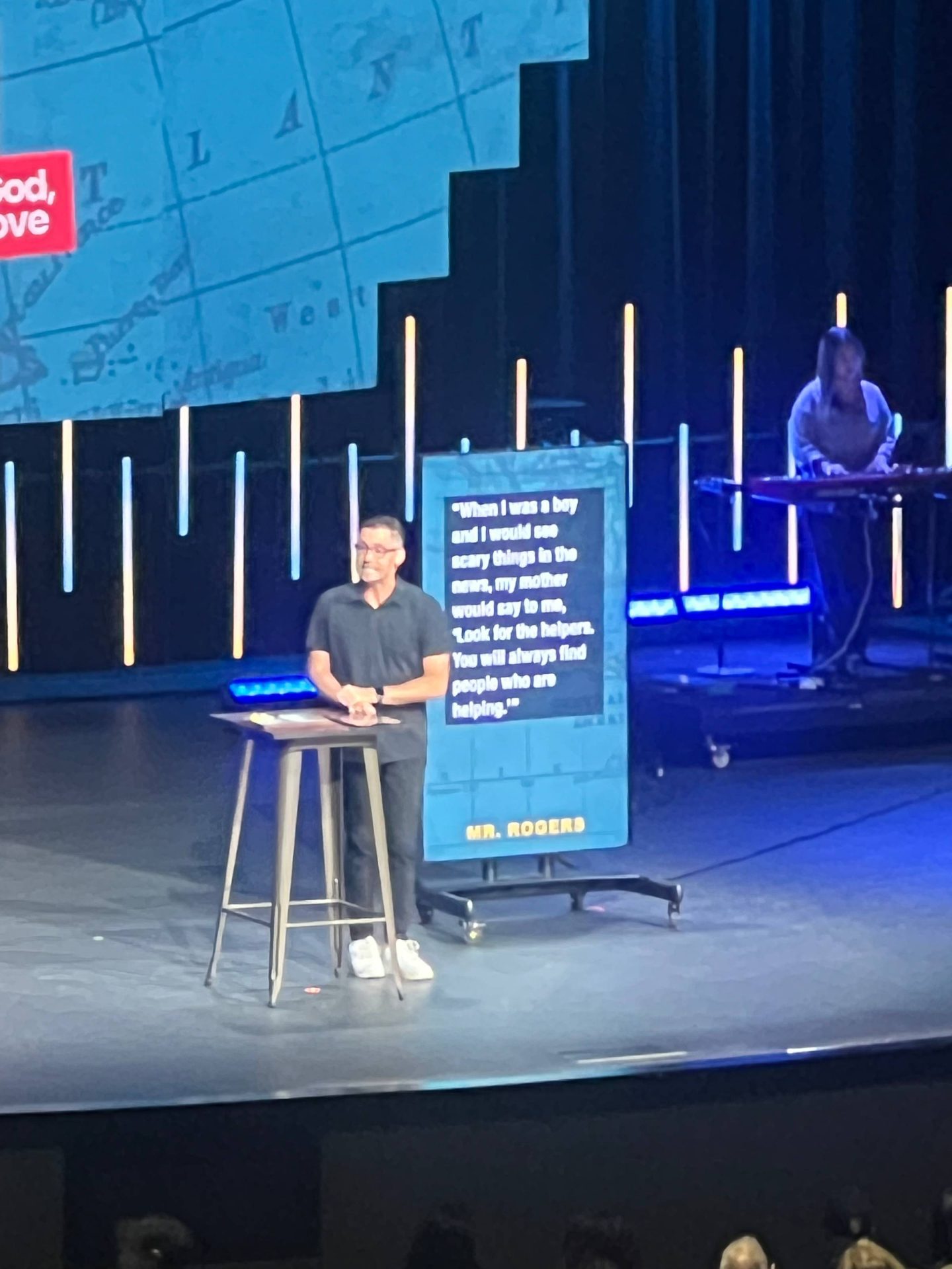 Something must be in the air. Maybe it’s Halloween. Maybe that we’re on the doorsteps of it being egg nog season (YUMMY!!) This morning at church, the Paster referred to the Mr. Rodgers quote I shared in Monday’s email (I post all my emails on my blog, and you can see that email here) I snapped a pic: