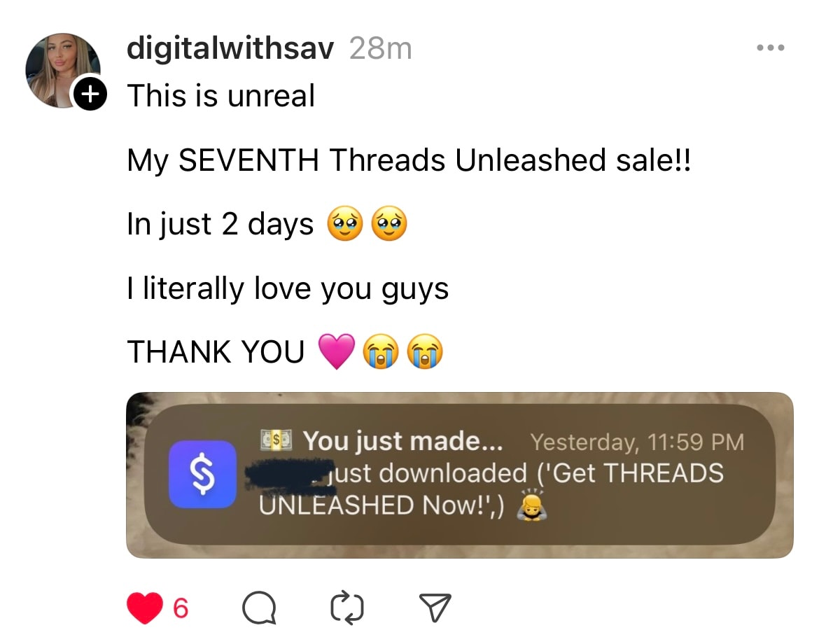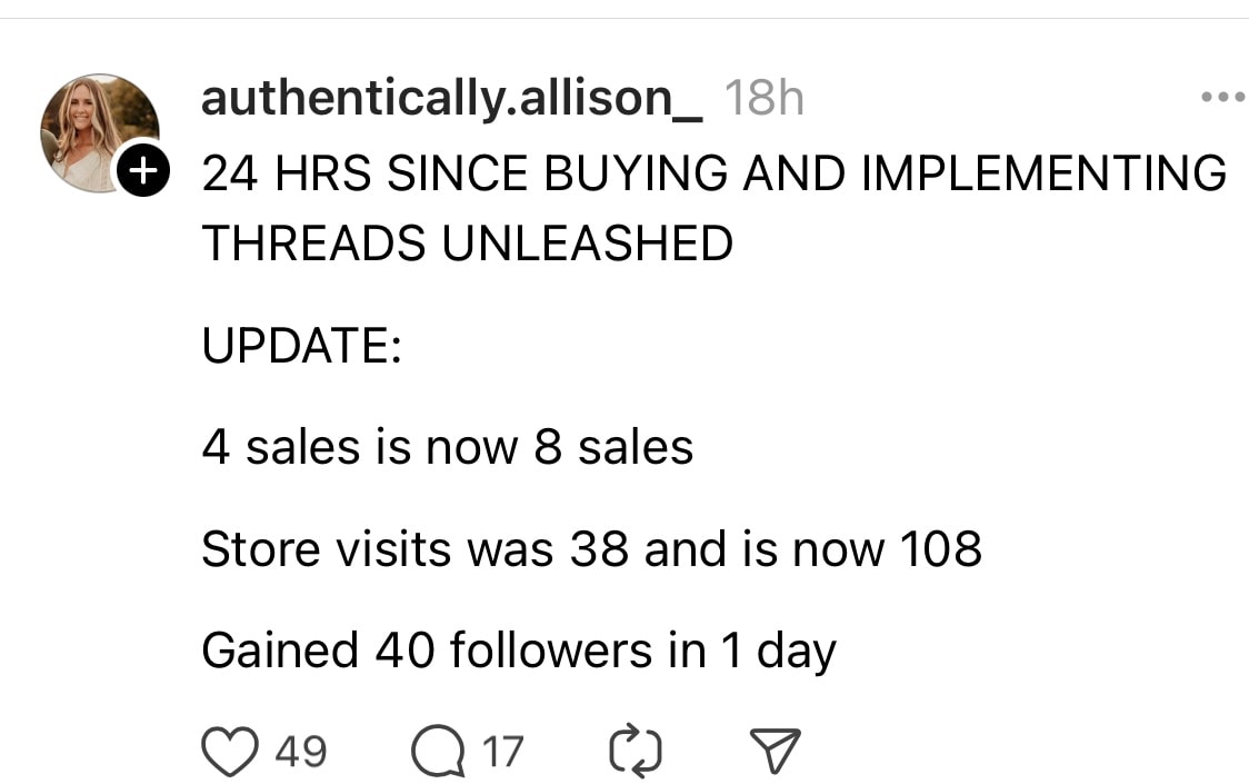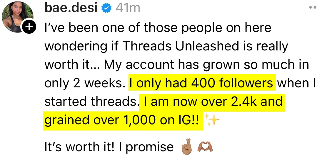 You’re looking to grow an engaged following on Threads (and IG!) with people who slide into your DMs with “I’m so glad I found you!” or “Do you offer mentorship/Coaching?”