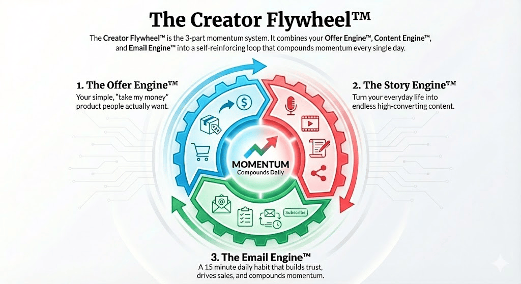 P.S. The Creator Flywheel doesn’t give a sh*t about how many followers you have, how “ready” you feel, or whether your funnel is “perfect”.